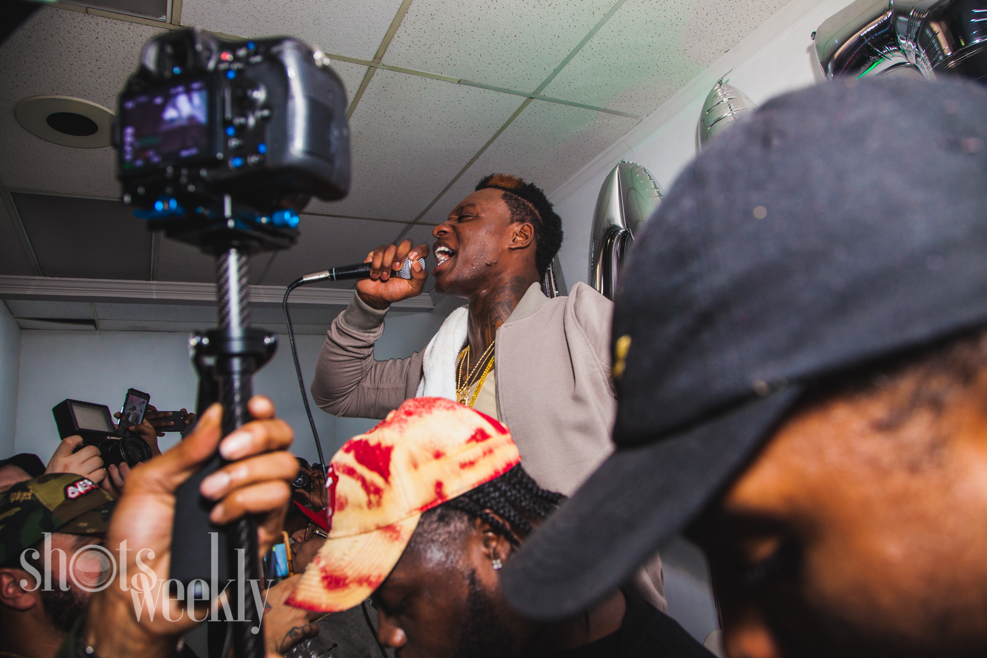 A couple weeks after shooting his remix video fiery Hip Hop artist Phresher had his listening party at the Hall of Fame studio. Among his hit song “Wait A Minute” Phresher preformed many songs to a packed house! Grafh and the Shaggy Show were in the house to support as well as the Bottega Baddies dressed in gold! It was an awesome party check it out.